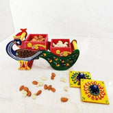 Hand Painted Peocock Design Dry Fruit Box - Multicolour