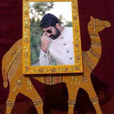 Add a vibrant and cultural touch to your home decor with this handcrafted Rajasthani camel with embroidered puppets. This unique piece features a majestically carved and painted wooden camel, adorned with colorful embellishments and intricate details. Seated regally on its back are two handcrafted...- Rs. 399.00