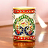 Add a touch of sophistication and cultural flair to your workspace with this beautiful white marble pen holder. The holder features intricate gold detailing and decorative kundan work, making it a stylish and functional addition to any desk. The weighted marble base keeps the...- Rs. 599.00