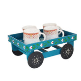 Wooden Handpainted Tea Thela Serving Table Trolley - Blue