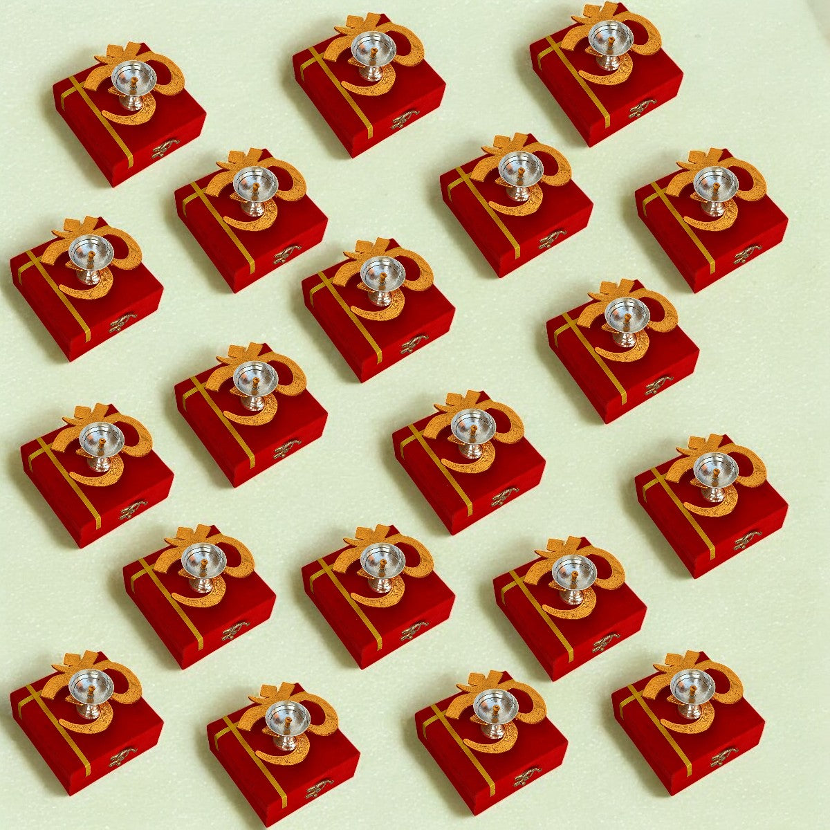 Invoke blessings and illuminate your sacred space with this exquisite Brass Gold and Silver Plated Om Diya, elegantly presented in a velvet box. This beautifully crafted diya features the sacred 'Om' symbol, meticulously formed from brass and adorned with a dual-tone gold and silver plating that highlights its intricate details. At its heart lies a functional oil lamp, ready to hold oil and a wick to cast a warm, auspicious glow. The combination of the revered Om symbol and the traditional diya makes it a powerful emblem of spirituality and peace. Perfect for daily prayers, festive occasions, or as a meaningful gift, this diya comes housed in a luxurious velvet box, making it an ideal present for housewarmings, Diwali, or any special spiritual ceremony.