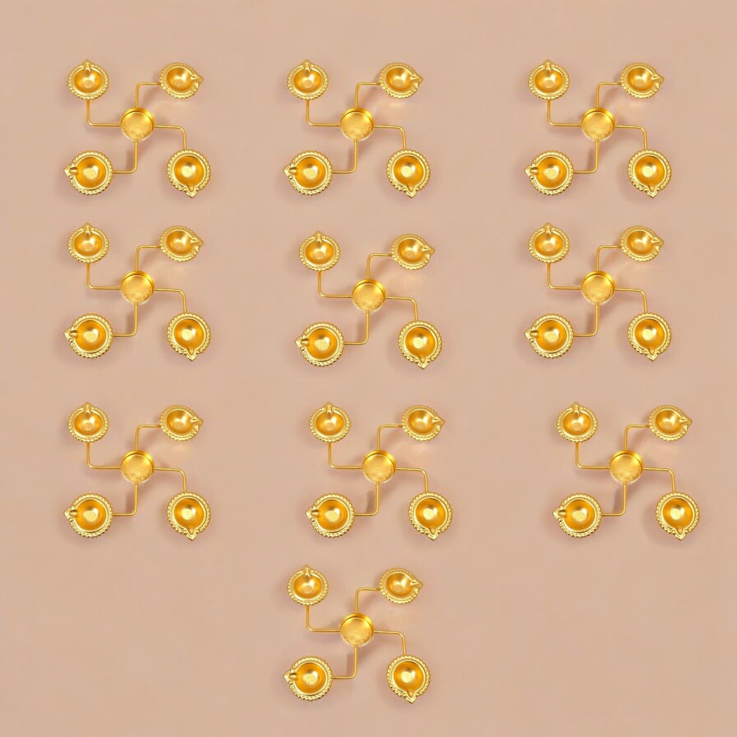 Celebrate the festival of lights with our exquisite Diwali Antique Swastik Brass Diya, a timeless piece designed to bring warmth, tradition, and prosperity to your home. This beautifully crafted diya features a unique five-wick design, forming the auspicious Swastik symbol—a traditional emblem of good fortune and well-being.
