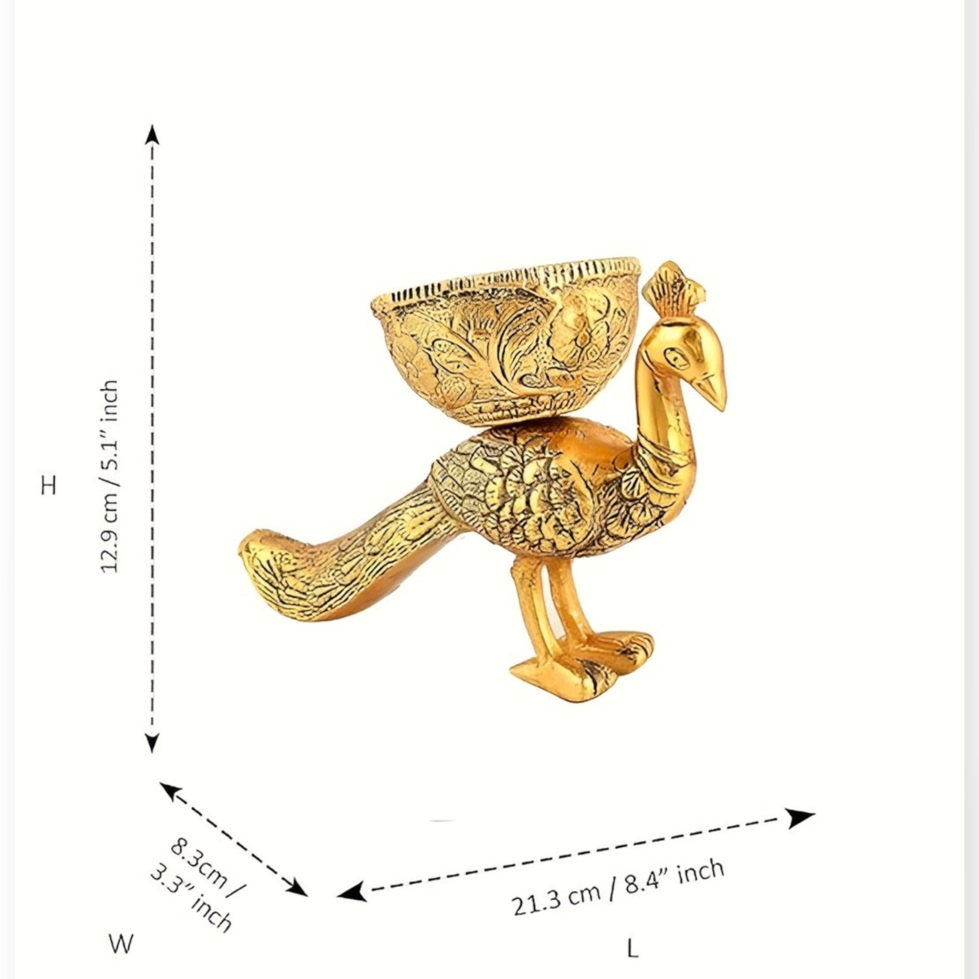 Adorn your table with the majestic beauty of this Metal Peacock Dry Fruit Bowl Set, a stunning blend of elegance and functionality. This set features two intricately designed peacocks, gracefully holding a beautifully etched bowl on their backs. Each peacock is sculpted with meticulous detail, from its fanned crest to its textured feathers, all finished in a lustrous golden hue that exudes opulence. The ornate bowls are perfectly sized for serving dry fruits, nuts, candies, or other small treats, making them ideal for festive occasions or everyday indulgence. More than just serving dishes, these peacocks are exquisite decorative pieces that will enhance any dining setting, coffee table, or display cabinet. They make a splendid gift for weddings, housewarmings, or anyone who appreciates fine craftsmanship and unique home accents.