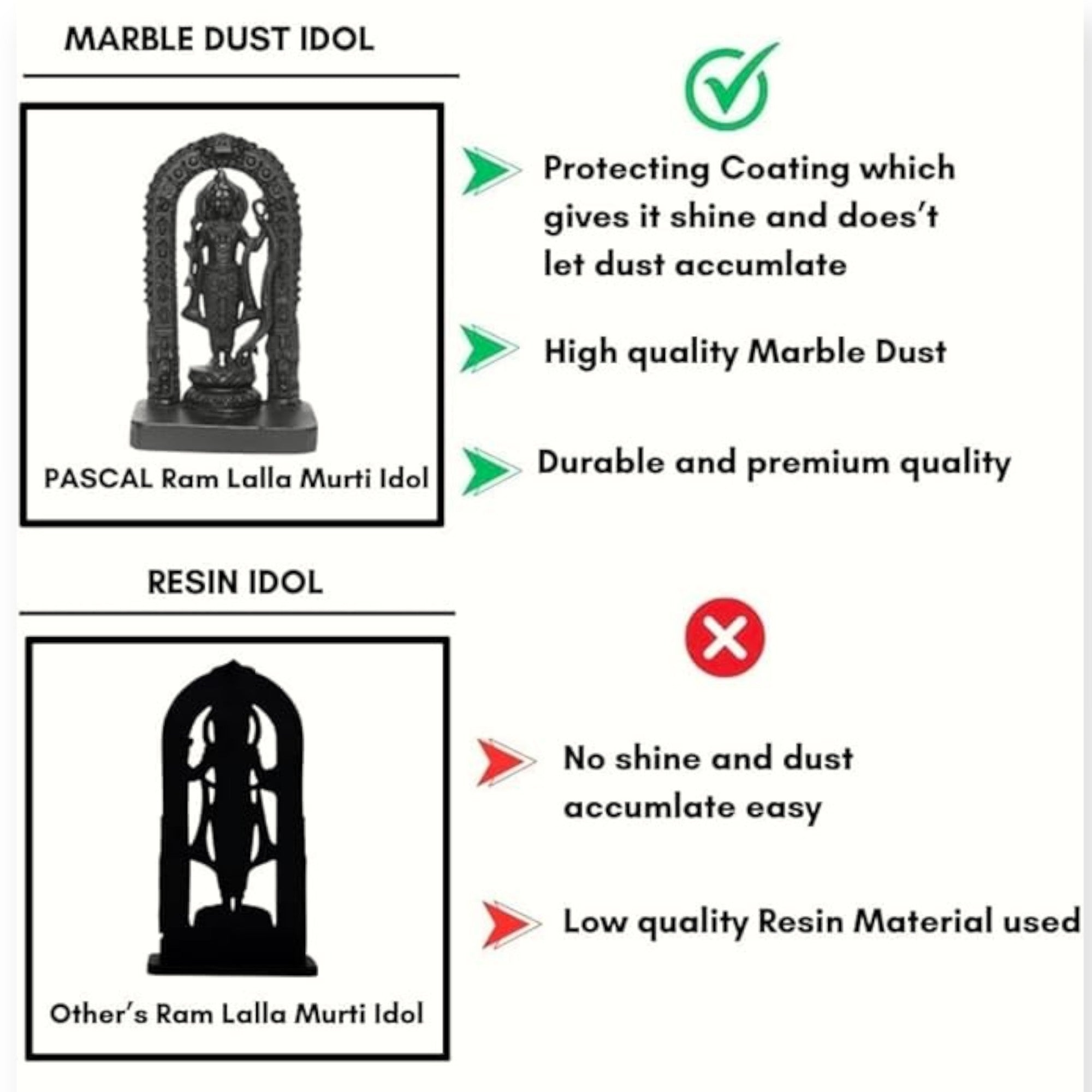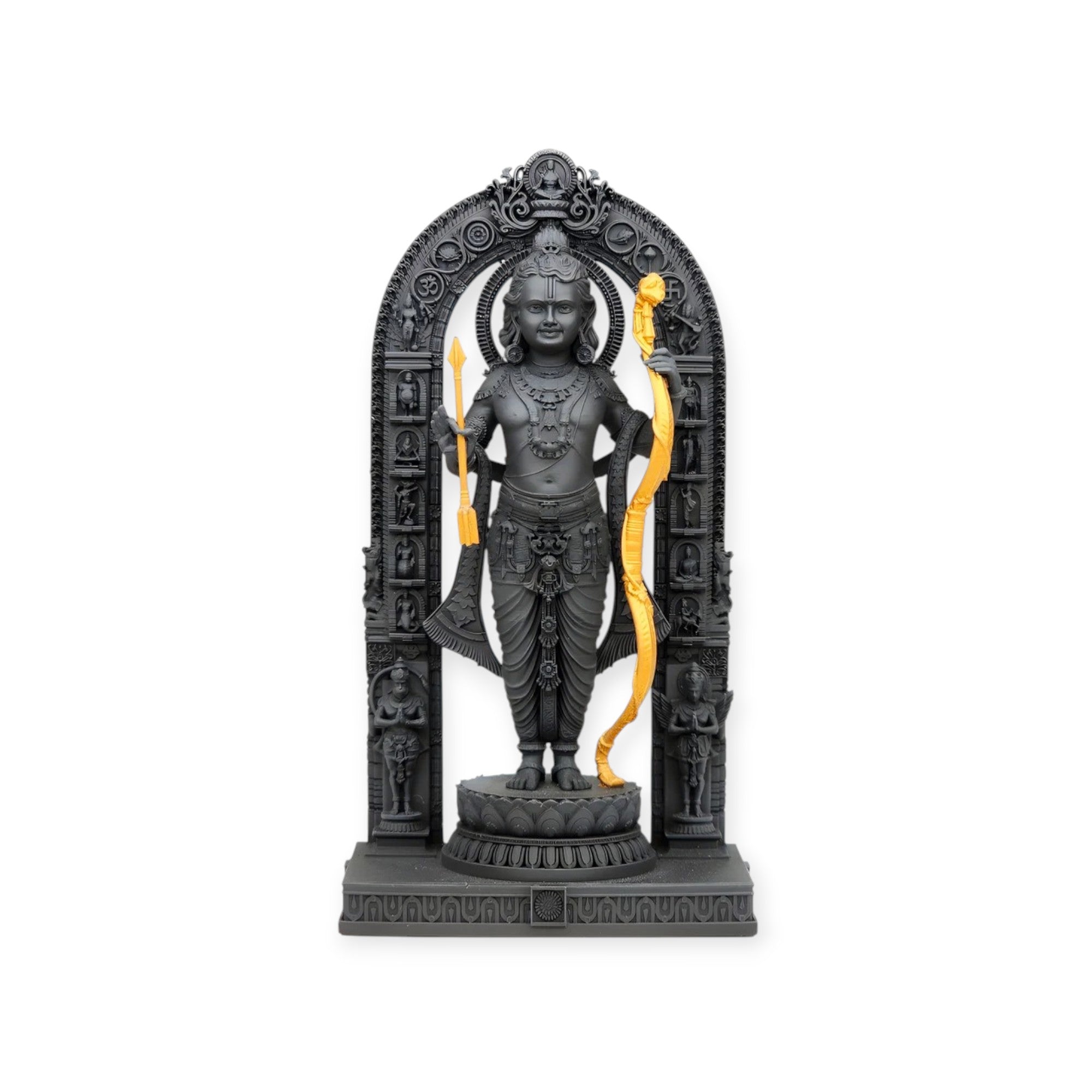 This beautifully crafted Polyresin Shree Ram Lalla Ayodhya Statue is a perfect blend of devotion and artistry. Made from high-quality polyresin, the statue showcases Lord Ram in an elegant stance, holding a bow and arrow—symbolizing his strength and divine protection. The intricate carvings and embellishments highlight traditional craftsmanship, making it an ideal addition to spiritual spaces or home decor.