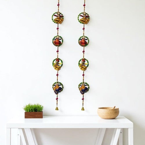 Embrace tradition and invite prosperity with this exquisite pair of wooden Ganesha hanging door decorations. Handcrafted with intricate details and adorned with beautiful patch and embroidery work, these hangings are more than just décor; they represent a symbolic welcome for good fortune and positive vibes.