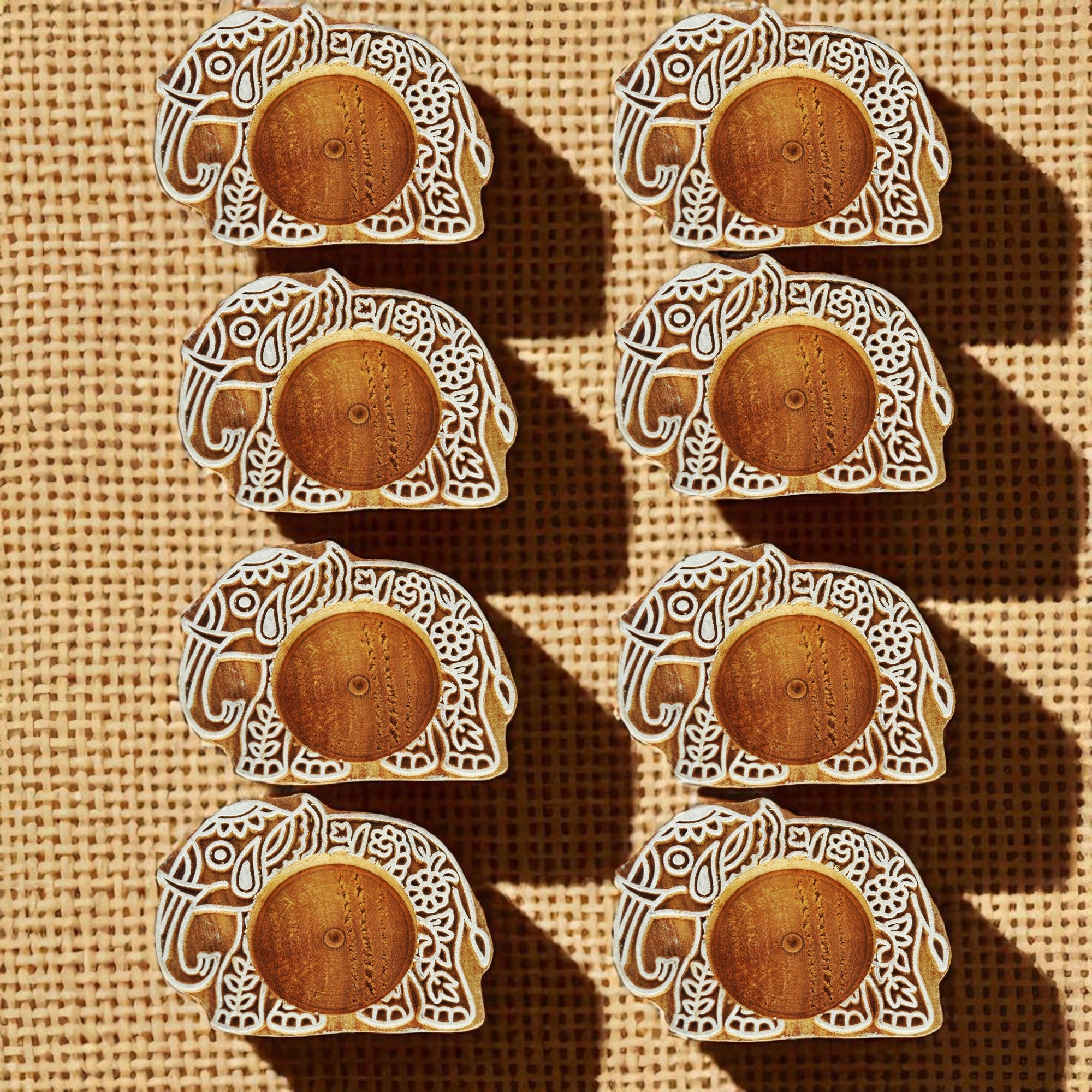 This wooden elephant block diya is a small, handcrafted candle holder that is perfect for adding a touch of whimsy to any home. The diya is made of sheesham wood, which is a type of hardwood that is known for its durability and beauty. The elephant design is hand-carved, and the diya is painted in a brown and white color scheme.