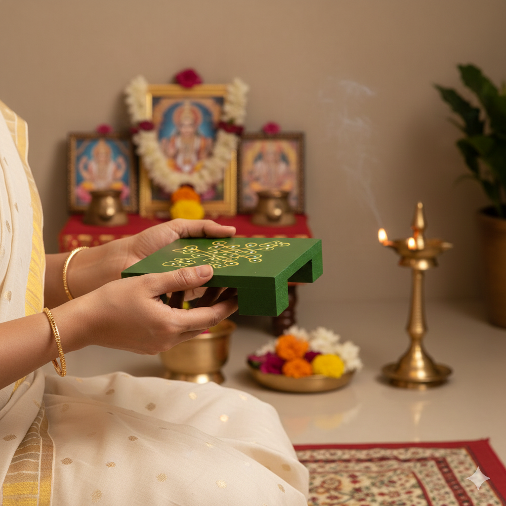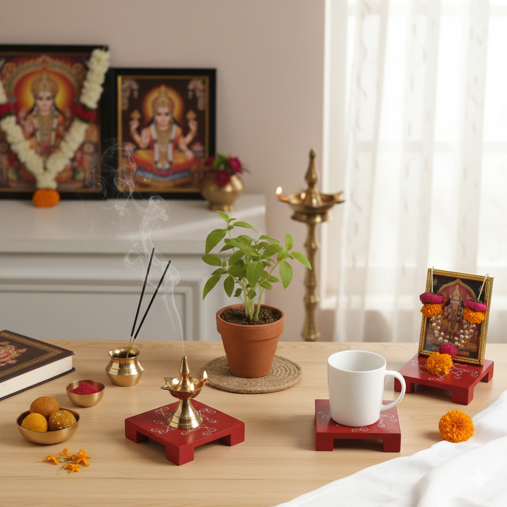 Add a burst of tradition and artistry to your space with this Wooden Hand-Painted Chawki Decorative set. Each piece is a handcrafted masterpiece, flaunting vibrant red tones adorned with delicate white rangoli motifs. With sturdy legs and a smooth raised platform, these chaukis are perfect for spiritual setups, home decor vignettes, or as unique gifting options. Whether used individually or as a pair, they bring a splash of culture and elegance wherever placed.
